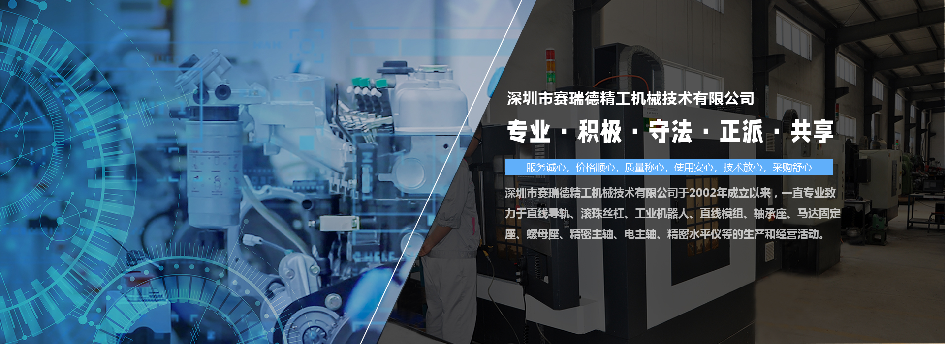 深圳市賽瑞德精工機(jī)械技術(shù)有限公司于2002年成立以來(lái),一直專業(yè)致力于直線導(dǎo)軌、滾珠絲杠、工業(yè)機(jī)器人、直線模組、軸承座、馬達(dá)固定座、螺母座、精密主軸、電主軸、精密水平儀等的生產(chǎn)和經(jīng)營(yíng)活動(dòng)。